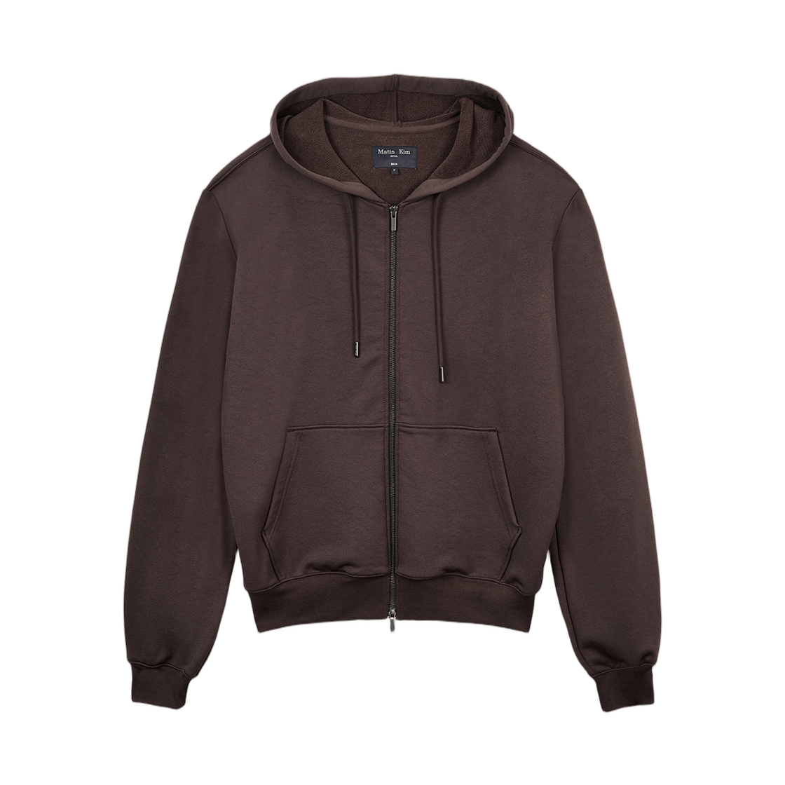 Matin Kim Back Logo Glitter Hoody Zip Up Brown