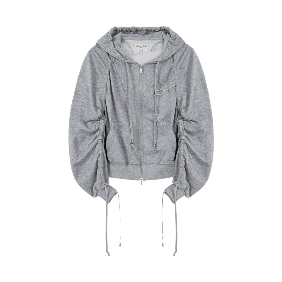 (W) 마뗑킴 슬리브 스트링 디테일 후디 집업 그레이