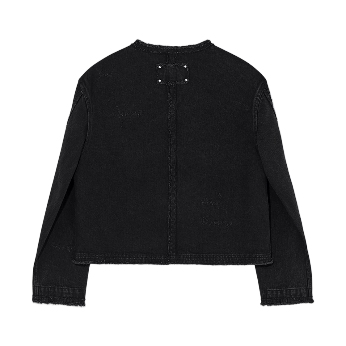(W) Matin Kim Collarless Damage Denim Jacket Black