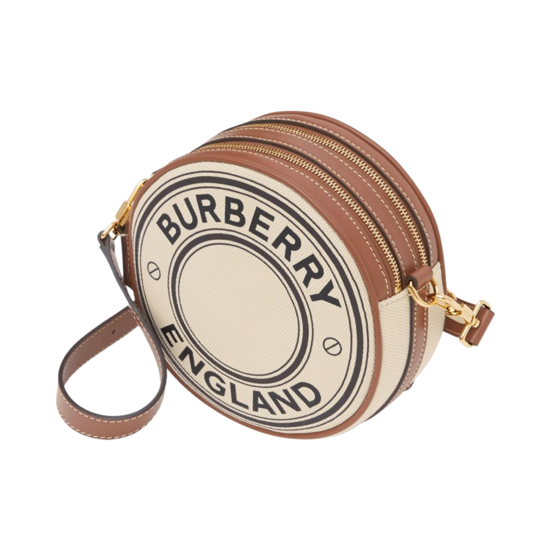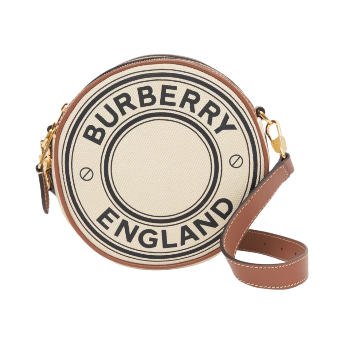 버버리 로고 그래픽 캔버스 앤 레더 루이스백 내츄럴 탄