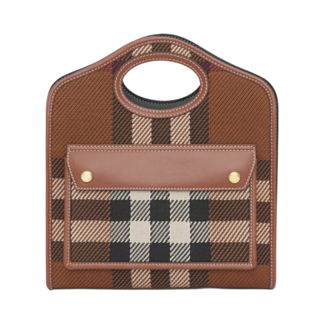 Burberry Mini Knitted Check and Leather Pocket Bag Dark Birch Brown