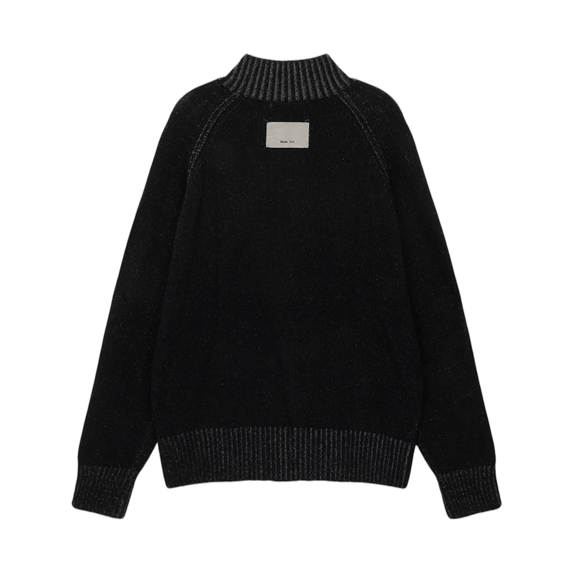 (W) 마뗑킴 투 톤 믹스드 니트 집업 블랙