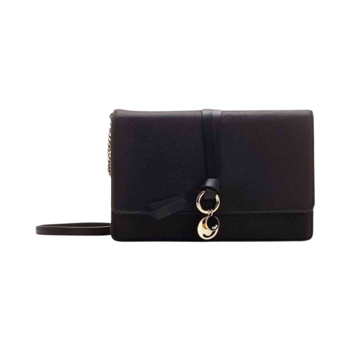 Chloe Alphabet Grained Shiny Calfskin Long Wallet Black
