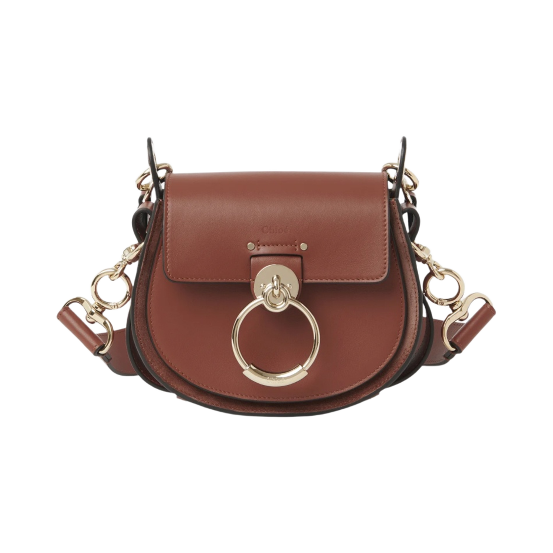 Chloe Tess Small Bag in Shiny Suede Calfskin Sepia Brown