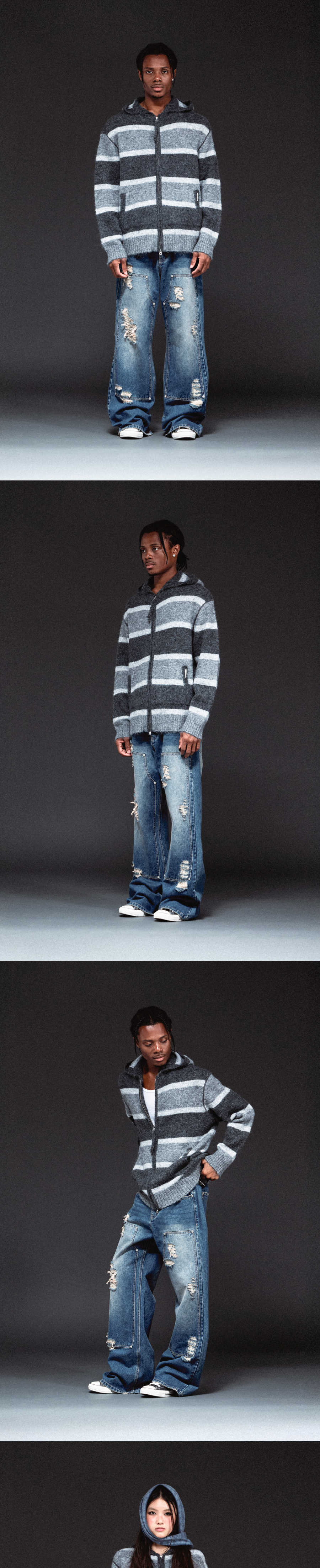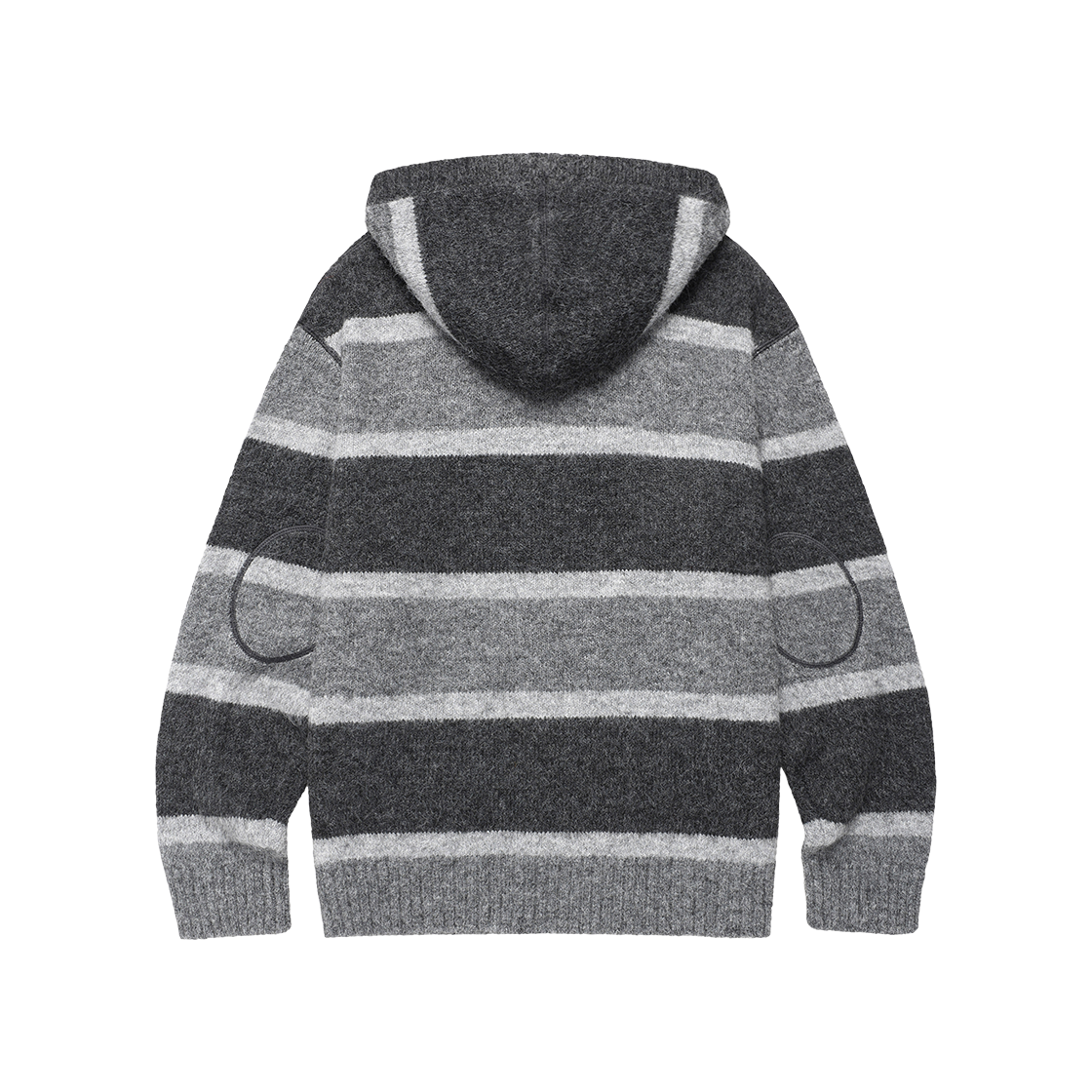 더바이닐하우스 스트라이프 니트 후드 집업 차콜
