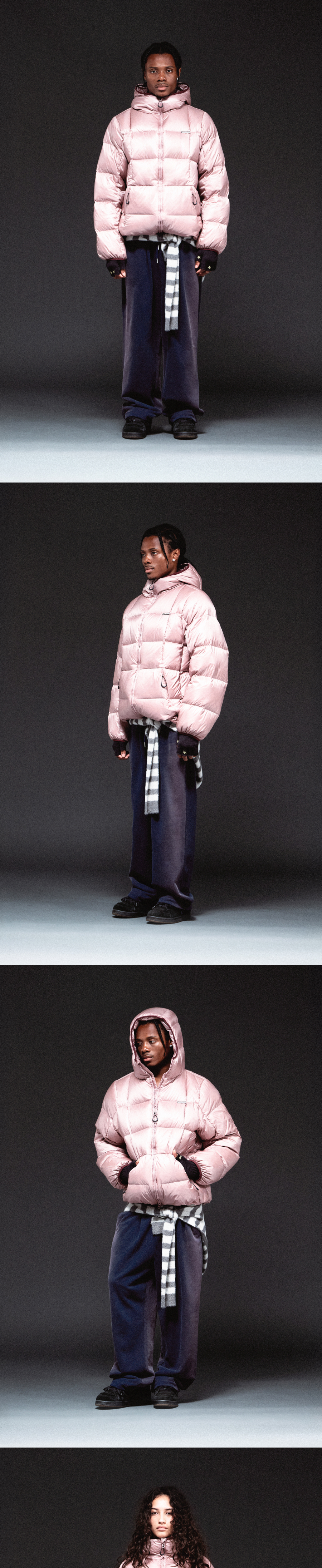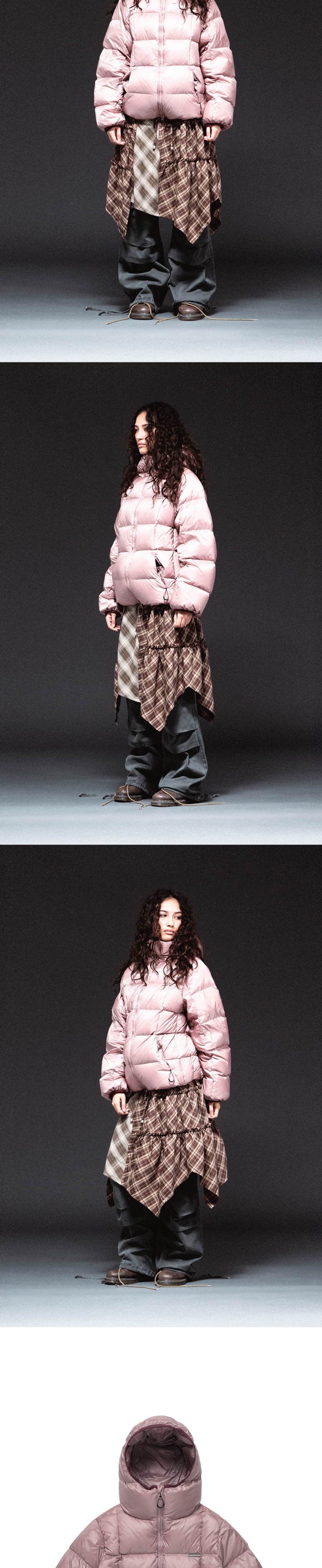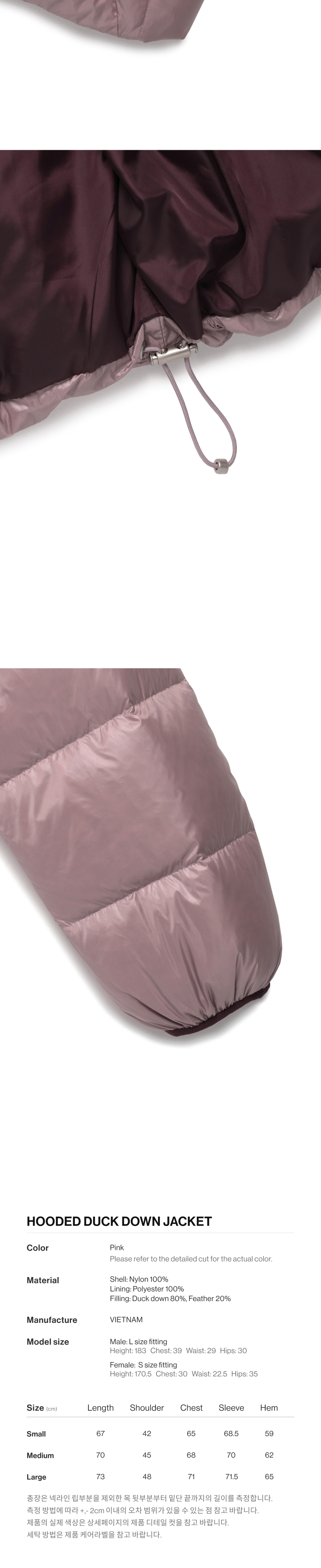 더바이닐하우스 후디드 덕 다운 자켓 핑크