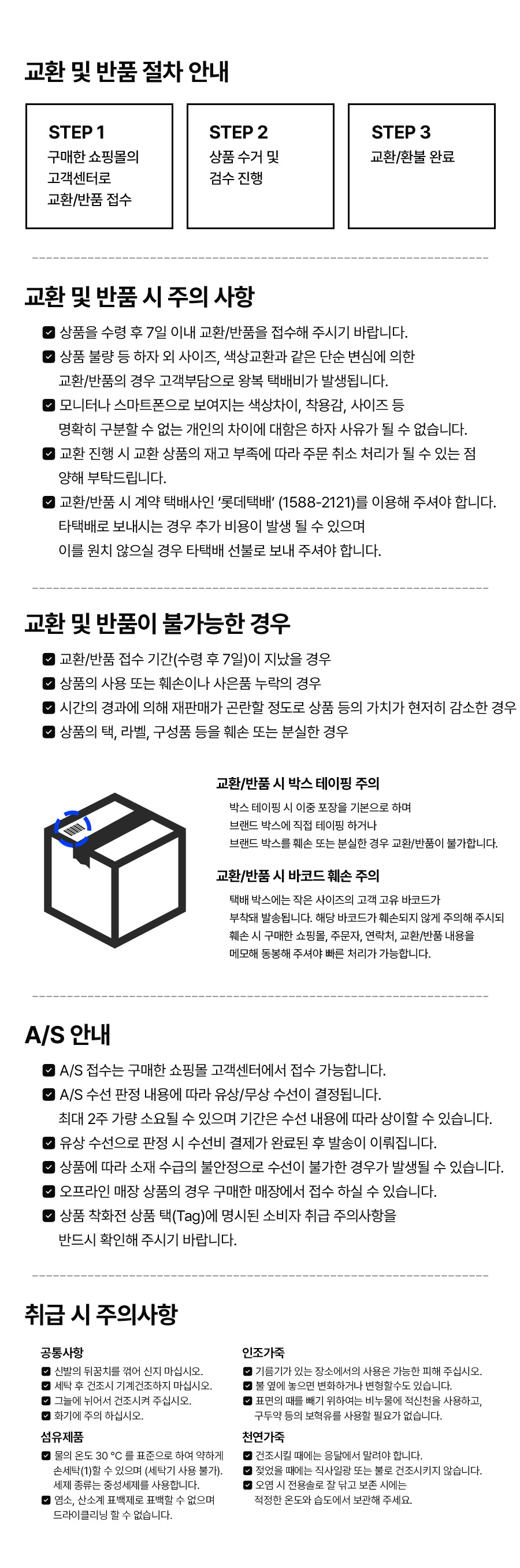 교환 및 반품 안내