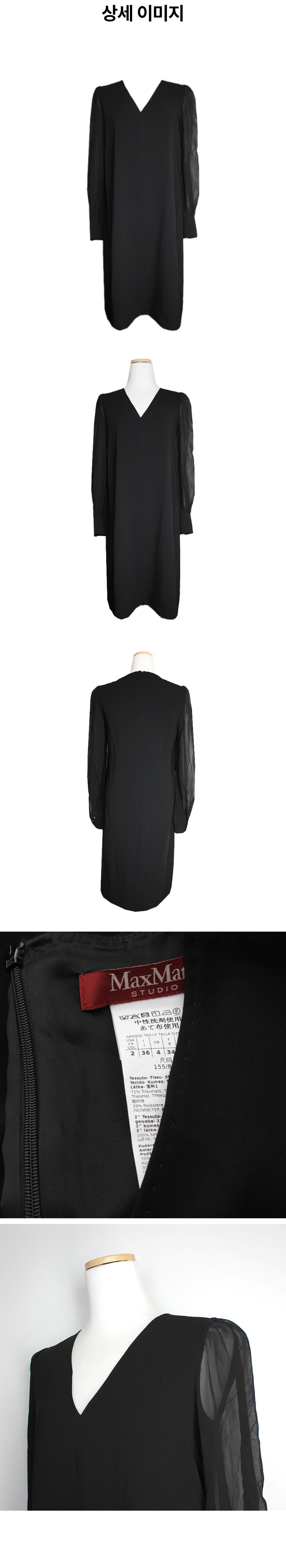 막스마라 스튜디오 블랙 시어 슬리브 원피스 44/55 사이즈