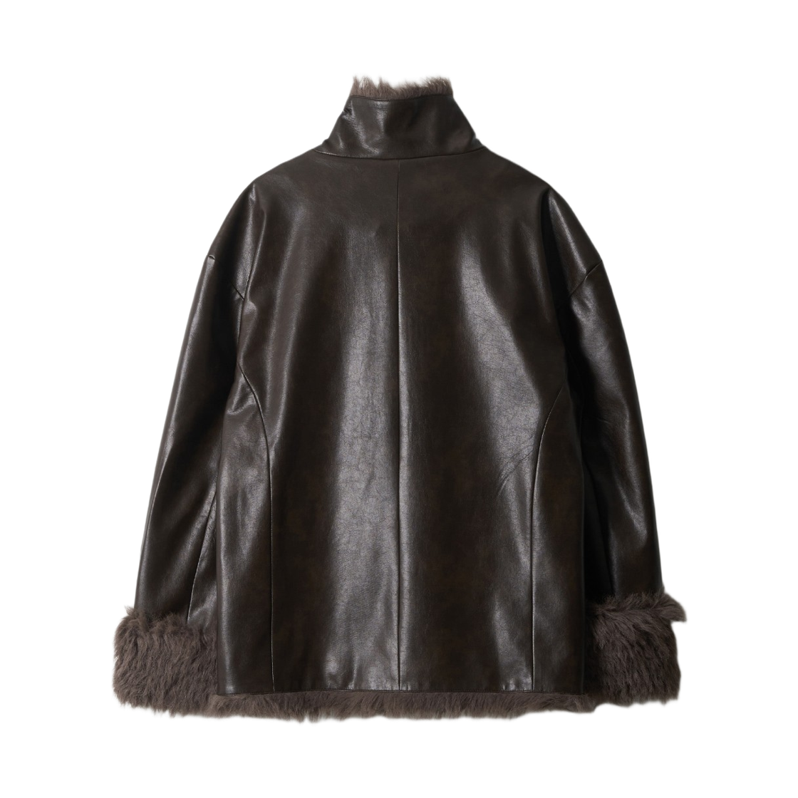 (W) Aviemuah Fur Pointed Faux Leather Jacket Brown