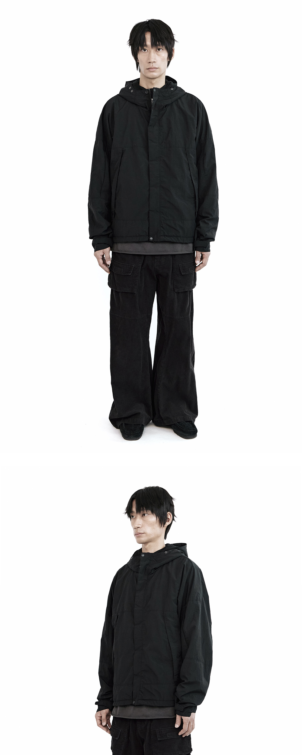 hard shell jacket - black - 아웃도어 자켓 베이스의 형태 - 보온성 및 착용상의 쾌적성을 고려하여 높은 완성도로 설계된 아우터 - 보드라운 촉감의 와플 조직 플리스 안감 & 사이드포켓 안감 - YKK사 비슬론 투웨이 지퍼 & 벨크로 클로징 - 전면 클로징 최상단/하단에 선그립 적용 - 내부와 후면 우측 하단 지퍼 포켓 - 후드 메쉬 안감 - 제품 밑단 스토퍼 & 소매 벨크로 *모델: 170 중반 / 마른 체형, 3사이즈 착용 *일반 체형 기준 - 170cm 초반 이하 2사이즈 권장 - 170cm 중반 3사이즈 권장 - 170cm 후반~180cm 초반 4사이즈 권장