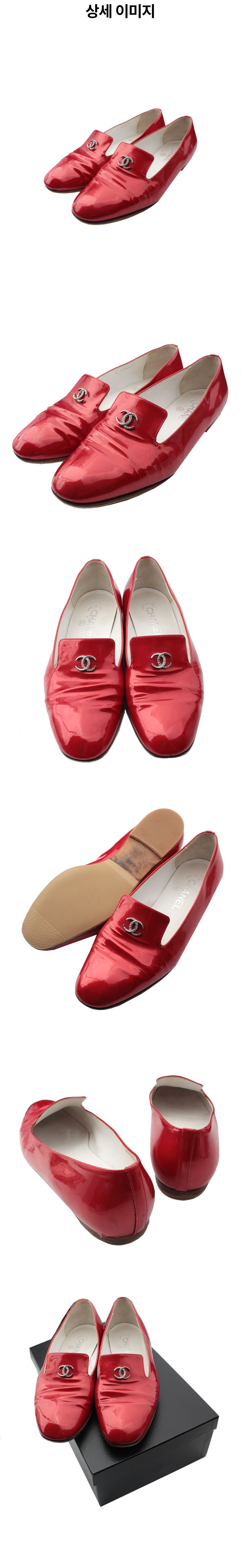 샤넬 레드 페이턴트 레더 로퍼 38.5C 사이즈