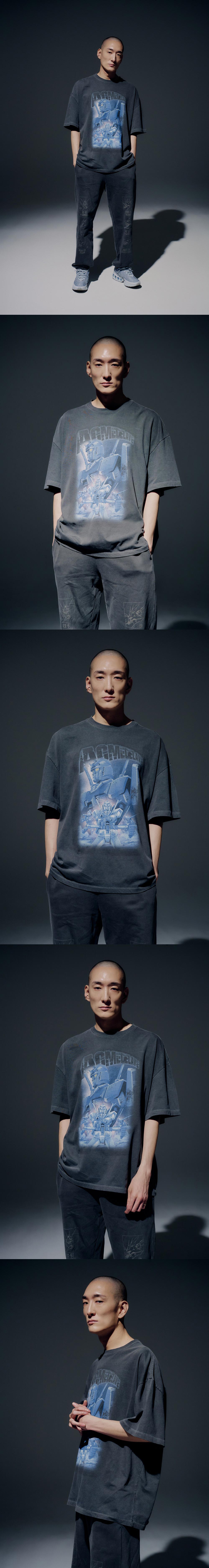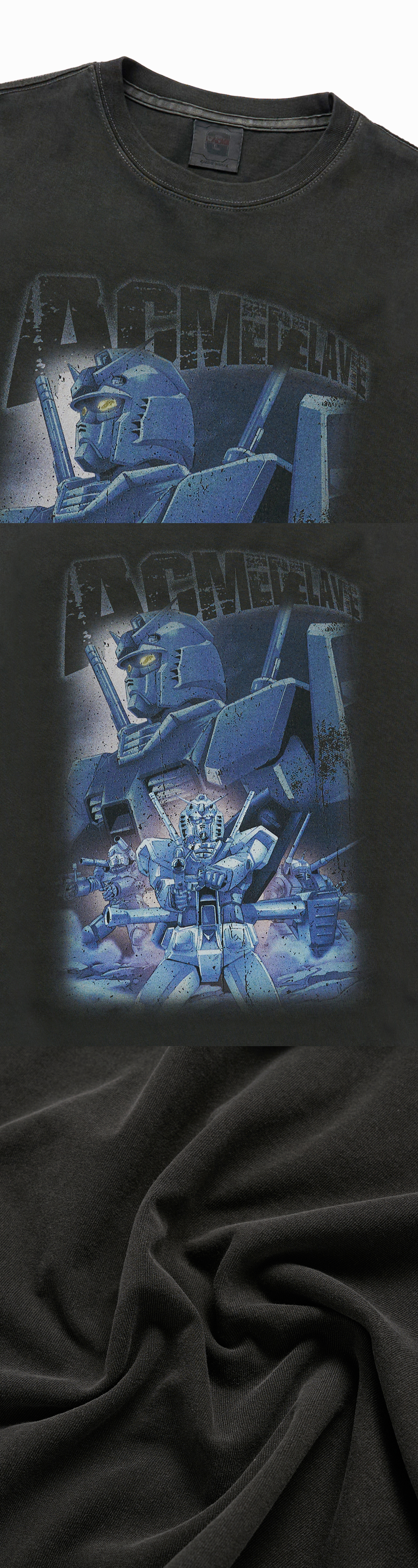 아크메드라비 모빌 슈트 건담 오퍼레이션 V 피그먼트 워싱 쇼트 슬리브 티셔츠 챠콜