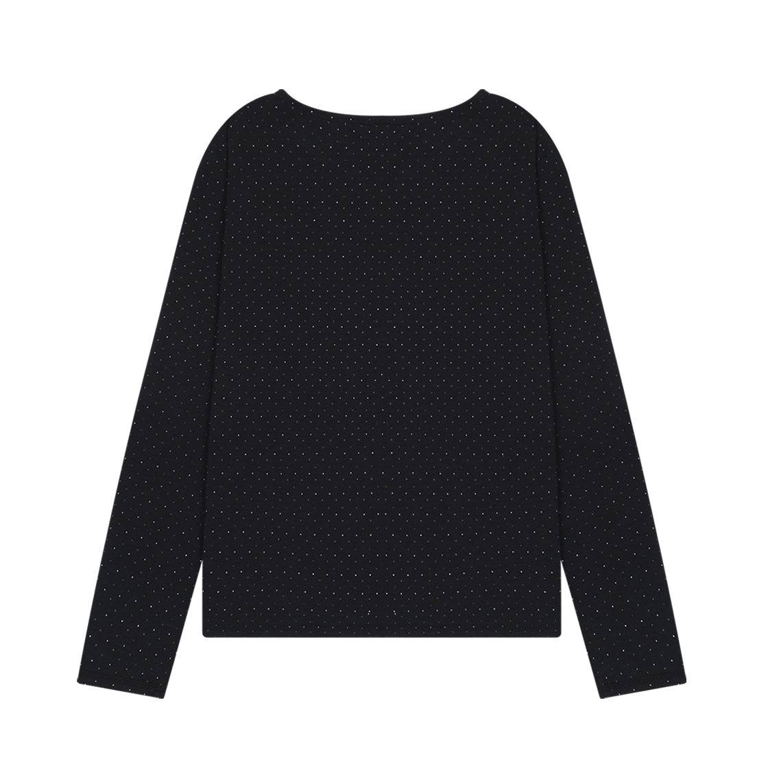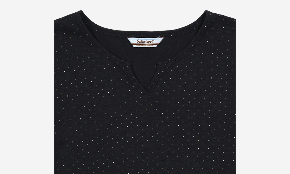 사파리스팟 1/2 컨트리 도트 브이넥 롱 슬리브 블랙