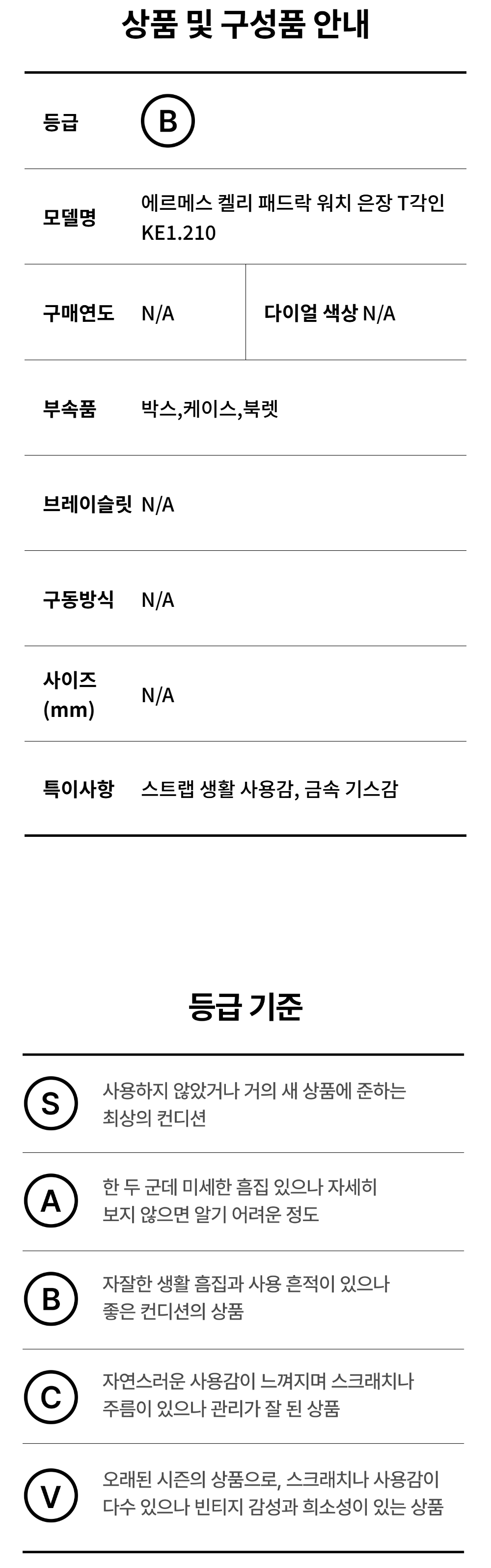 에르메스 켈리 패드락 워치 은장 T 각인 KE1.210