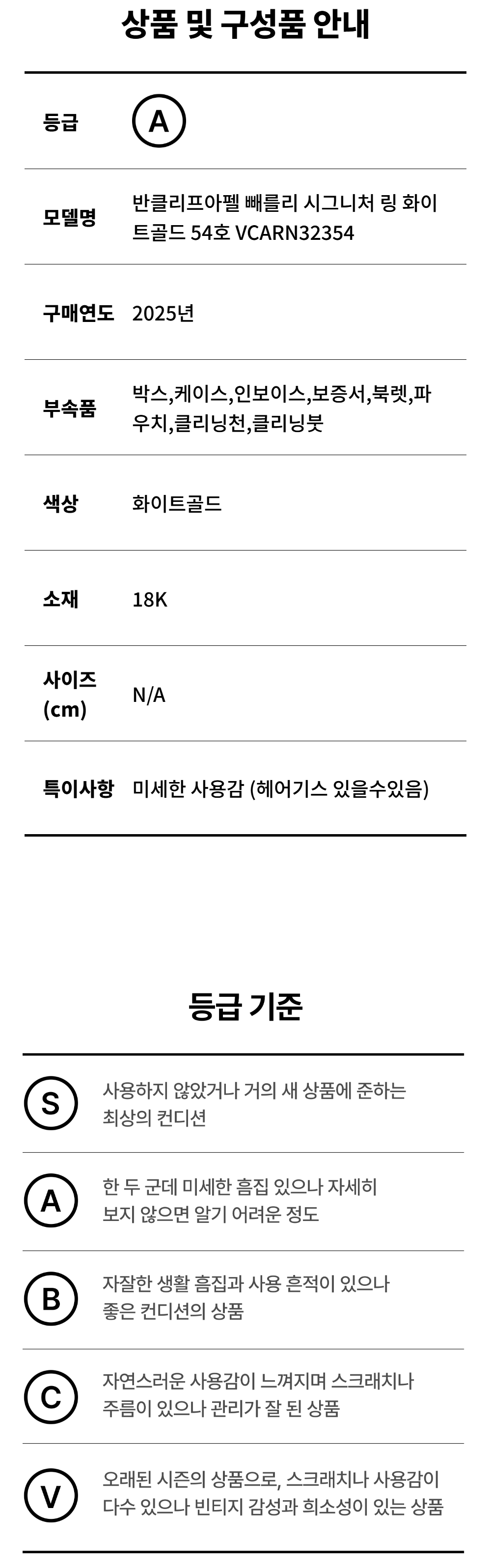 반클리프아펠 빼를리 시그니처 링 화이트골드 54호 VCARN32354