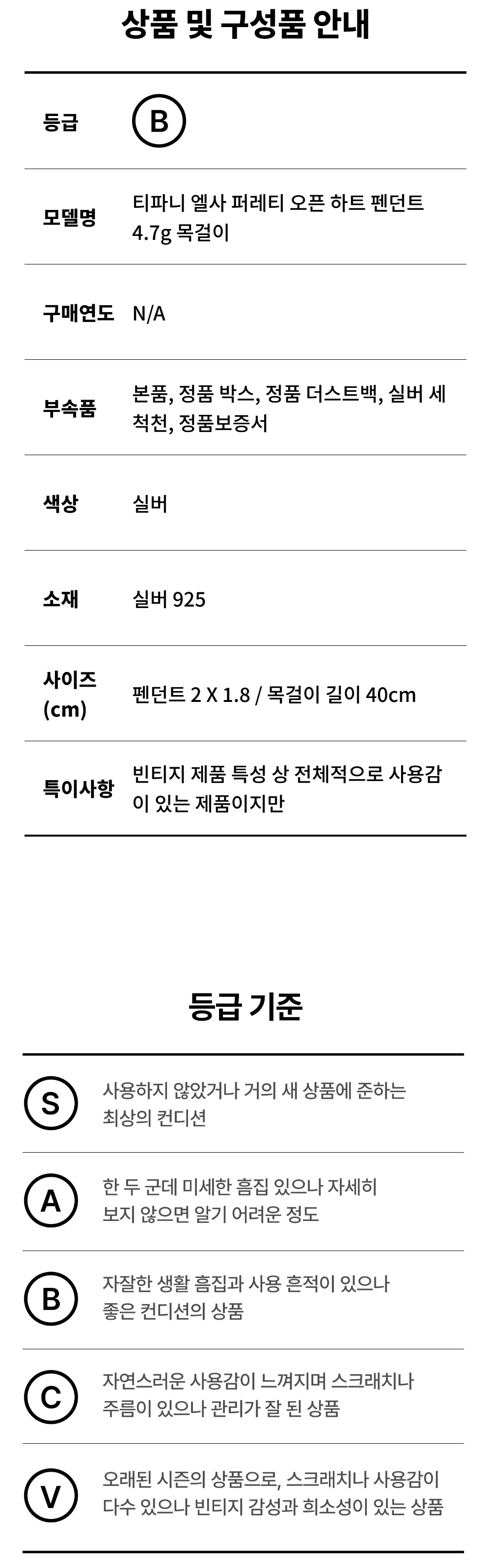 티파니 엘사 퍼레티 오픈 하트 펜던트 4.7g 목걸이 풀구성 NO.64