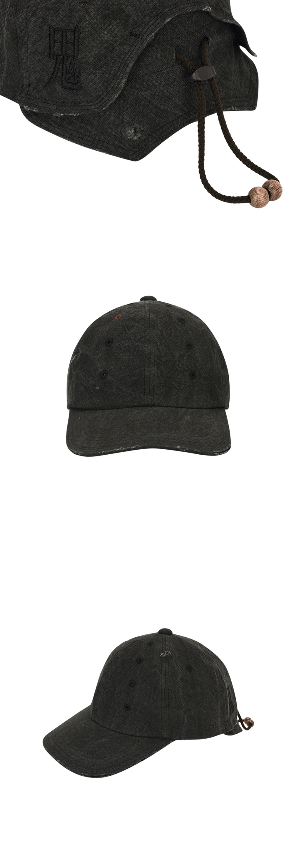 지안 예 슈텐 도지 캡 차콜입니다. - 시즌 컨셉 모티브 자수 포인트 - 후면 스트링으로 사이즈 조절 가능 - 탄탄한 코튼 리넨 혼방 소재