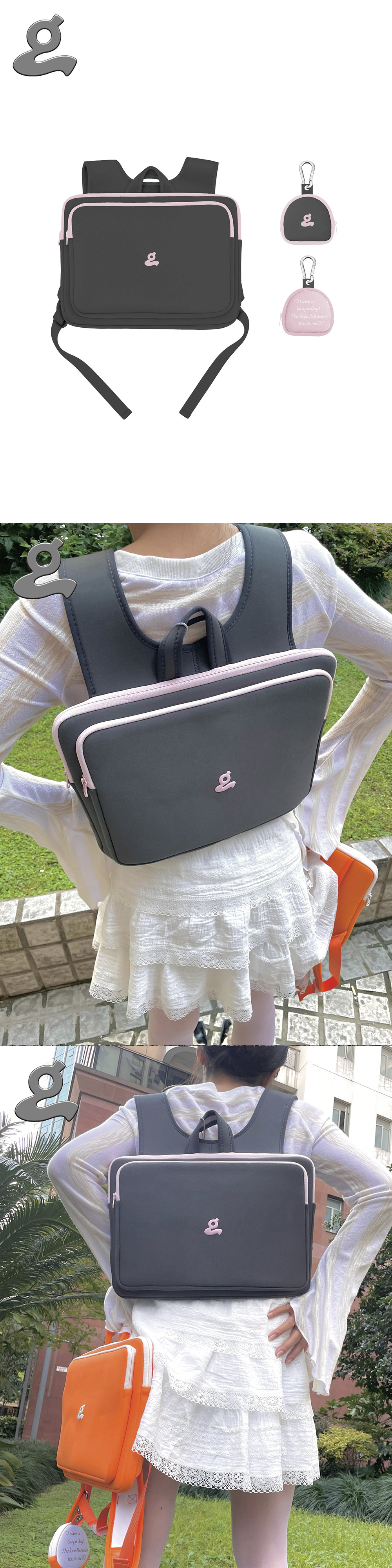 13인치 - 16인치 랩탑 모두 수납가능한 테크친화적 백팩입니다. 이어폰 / 충전기용 파우치도 함께 포함된 제품입니다.