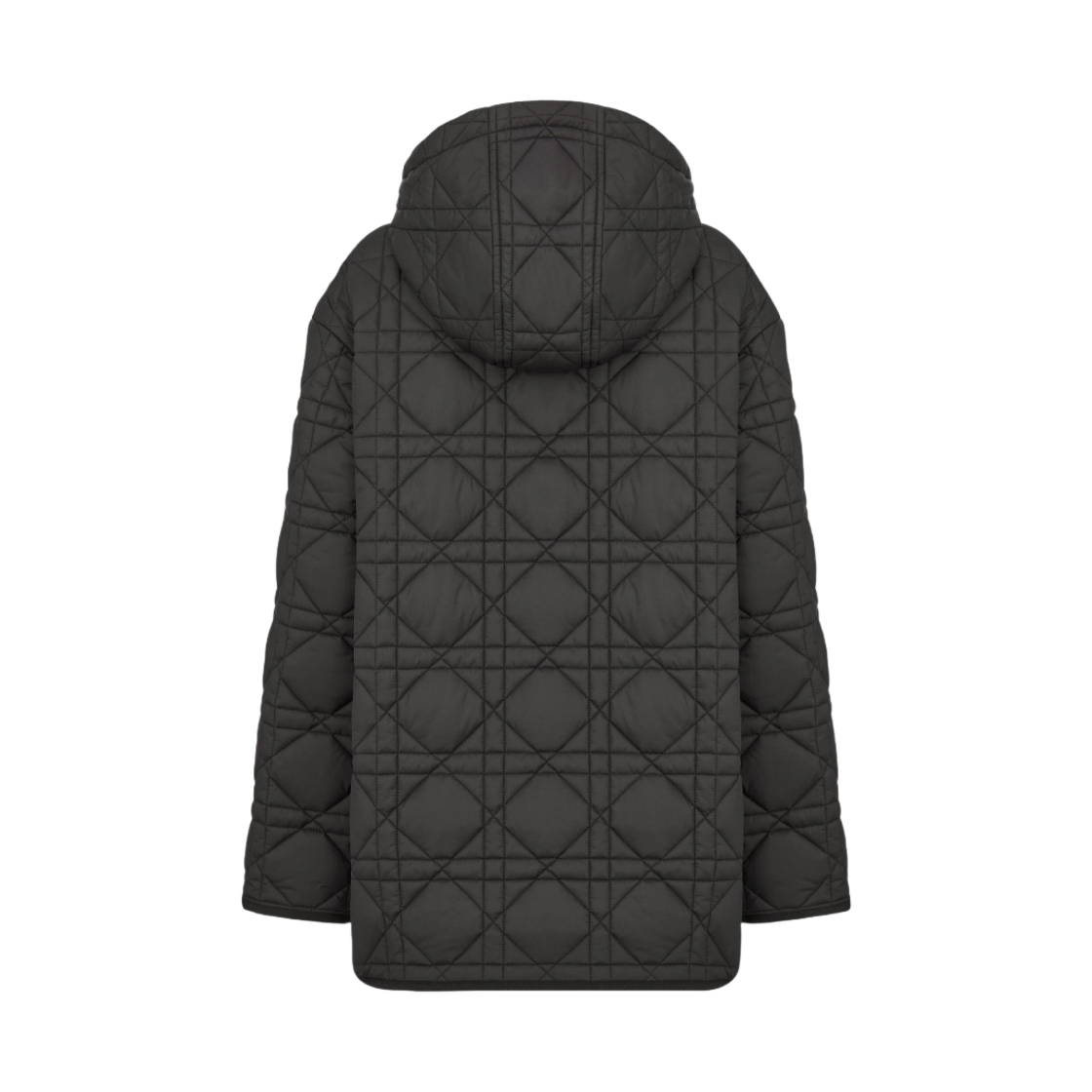(W) Dior Macrocannage Hooded Peacoat Quilted Technical Taffeta Black