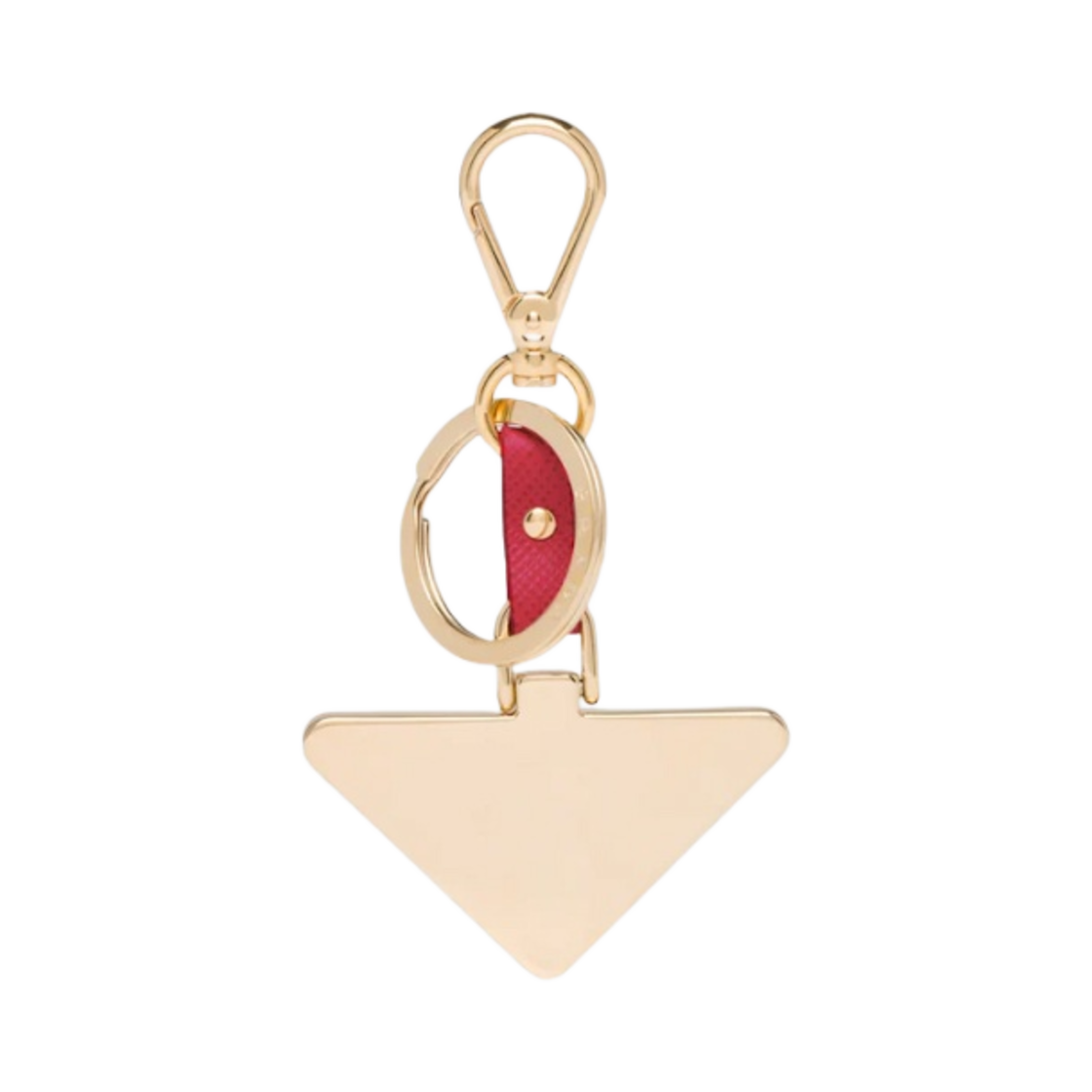 프라다 사피아노 레더 트라이앵글 로고 키체인 파이어리 레드 골드