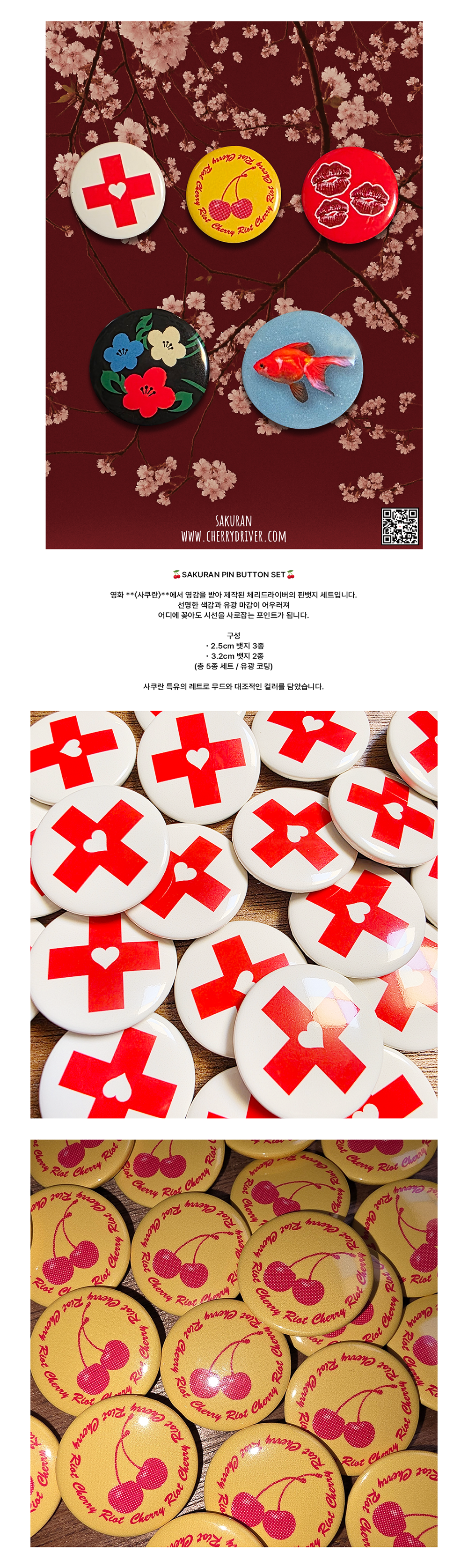 구성 ・2.5cm 뱃지 3종 ・3.2cm 뱃지 2종 (총 5종 세트 / 유광 코팅) 사쿠란 특유의 레트로 무드와 대조적인 컬러를 담았습니다.