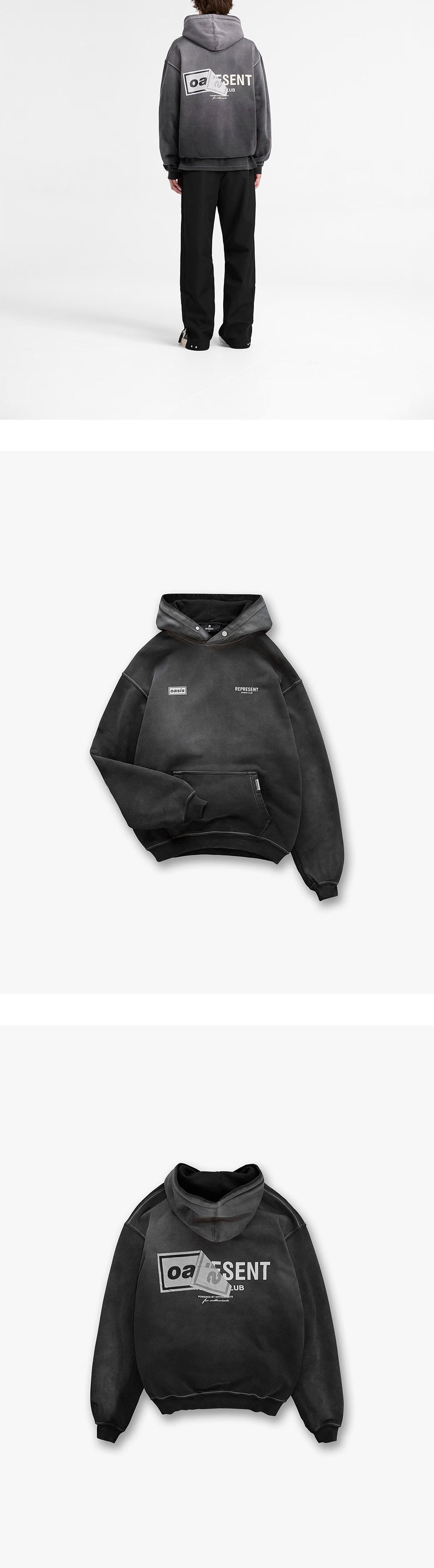리프레젠트 오아시스 오너스 클럽 후디 스테인드 블랙 - 25FW