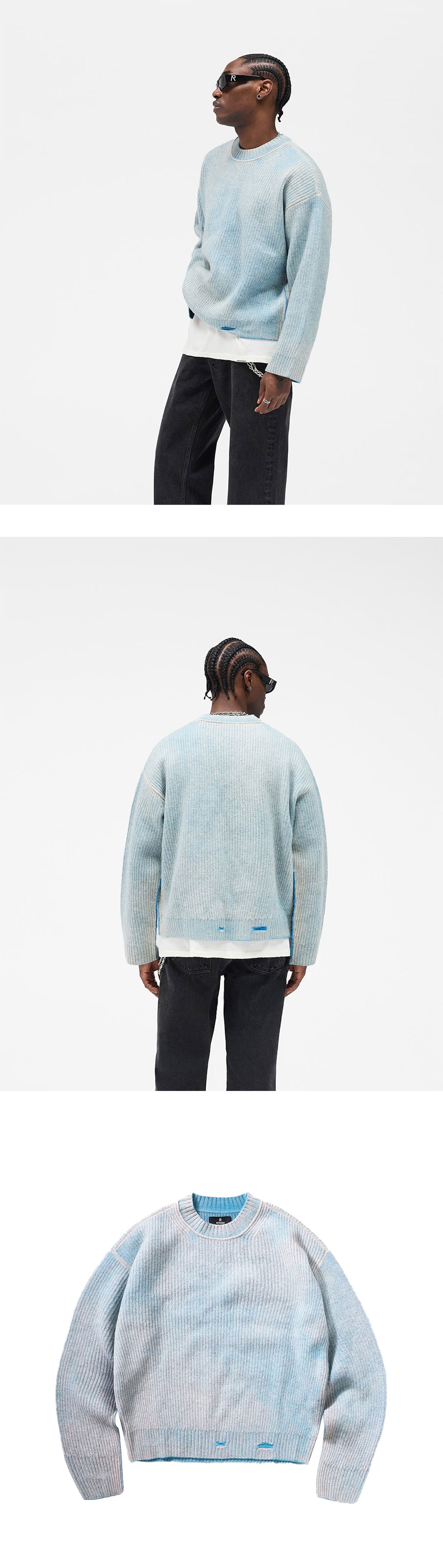 리프레젠트 리버시블 페이드 아웃 니트 클라우드입니다. - 클라우드 리버시블 스웨터 - 페이드 아웃 프린팅 - 디스트레스드 디테일 - 탈부착 라벨