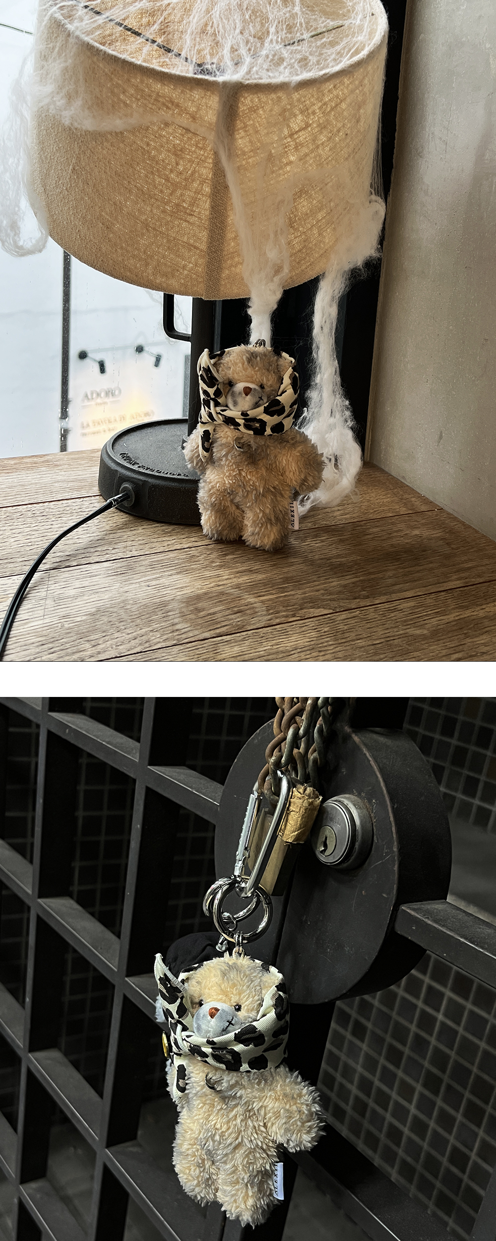 [ALEXII] LEOPARD HUNTER BEAR 레오파드 무늬 스카프를 두른 곰돌이 키링입니다. 코 옆에 상처난 디테일을 넣어 귀여움을 더해주었습니다. 핸드메이드로 더티가공 염색처리를 하였으며 반다나는 탈부착이 가능합니다. - POLYESTER 100% - USED EFFECT - FABRIC : COTTON 100% - ALEXII SIGNATURE PENDANT - SILVER-TONE METAL HOOK CLOSURE - REMOVABLE BANDANA SCARF - 스카프는 한번만 묶어서 보내드리므로 두 번 묶어주시거나 실,핀 등으로 단단히 고정 시켜 주시면 분실을 방지 할 수 있습니다. - MADE IN CHINA (base doll body) - HAND-CRAFTED & CUSTOMIZED IN KOREA (후가공/커스텀: 베이스가 되는 인형 몸판 제작 외 모든 공정은 한국에서 핸드메이드로 제작됩니다.) - 반다나는 탈부착이 가능하며, 분실시에 별도 구매가 되지 않습니다.