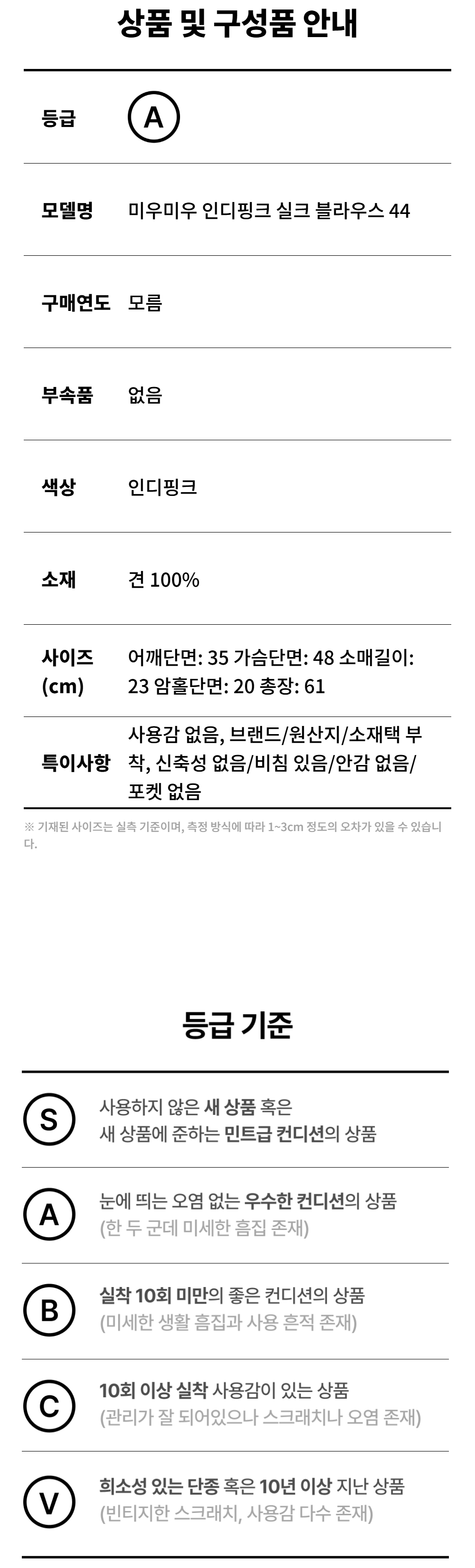 미우미우 인디 핑크 실크 블라우스 44 사이즈