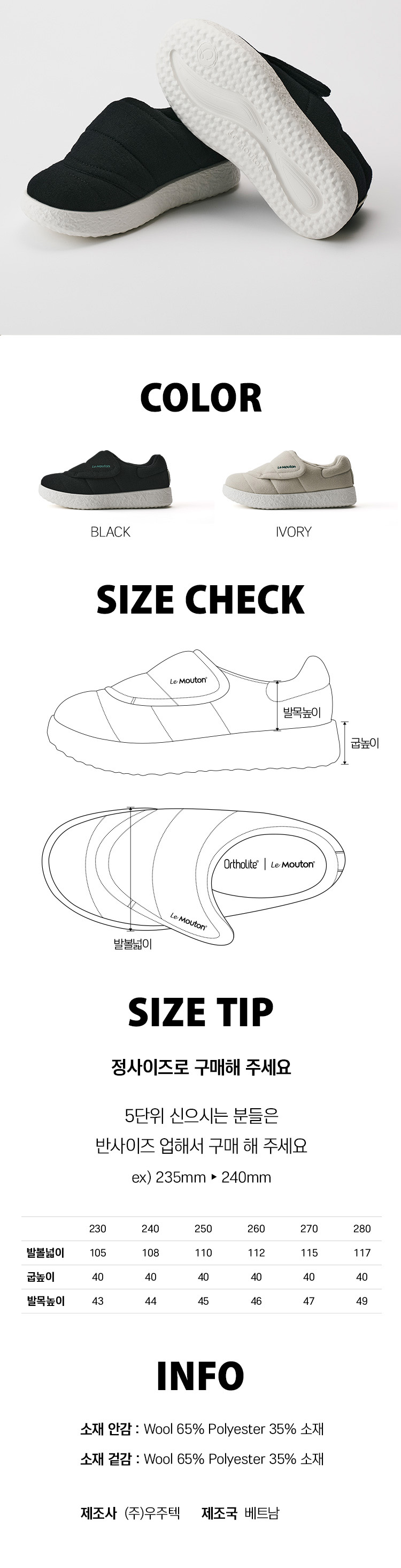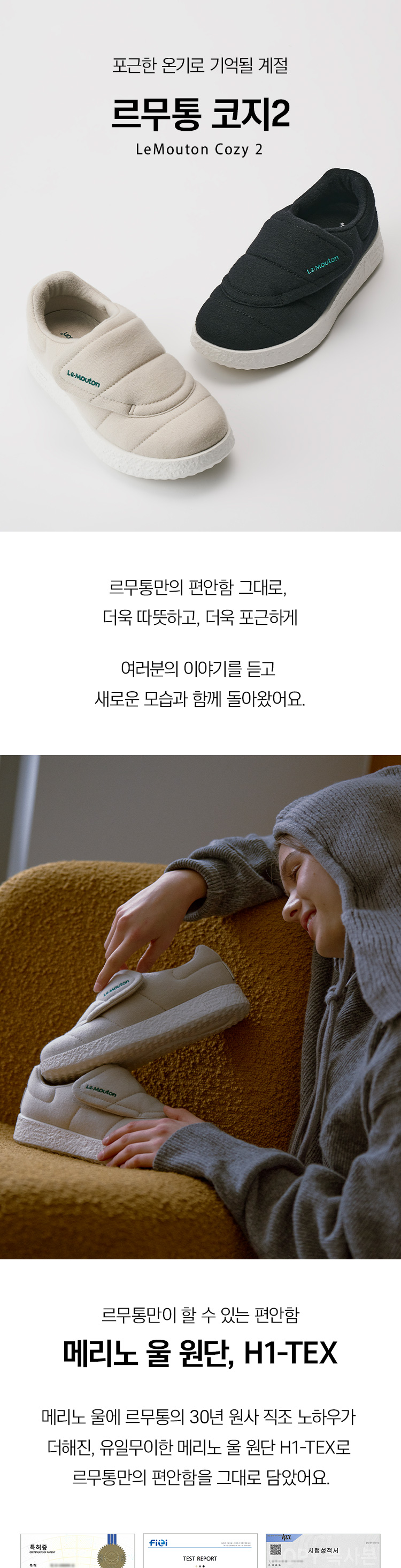 [6% 적립] 르무통 코지2 발 편한 메리노울 패딩 신발 아이보리