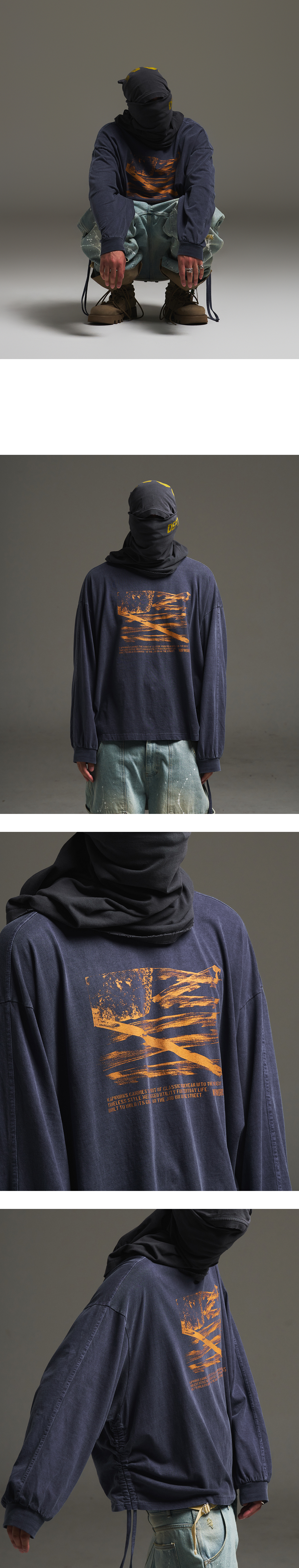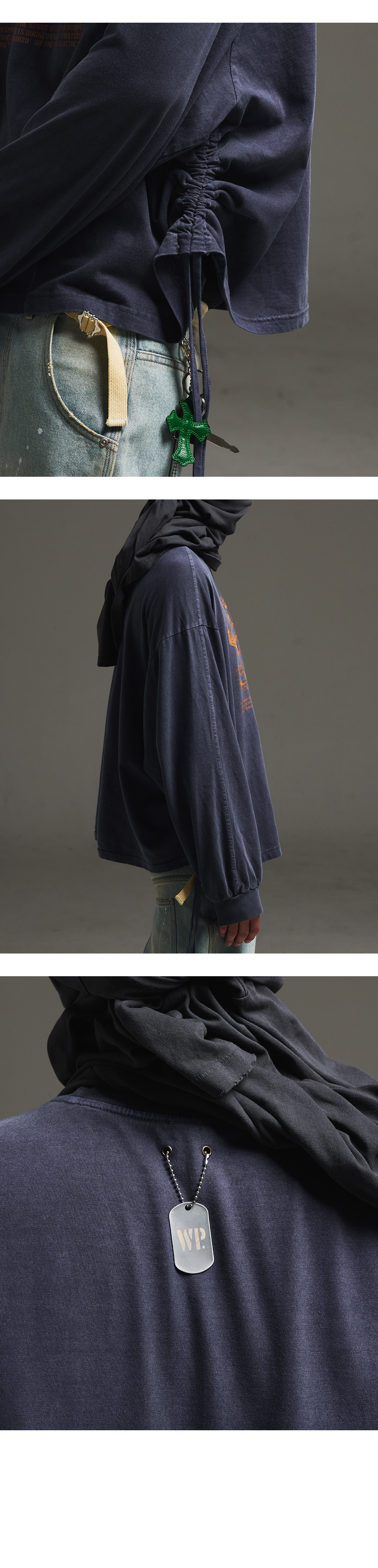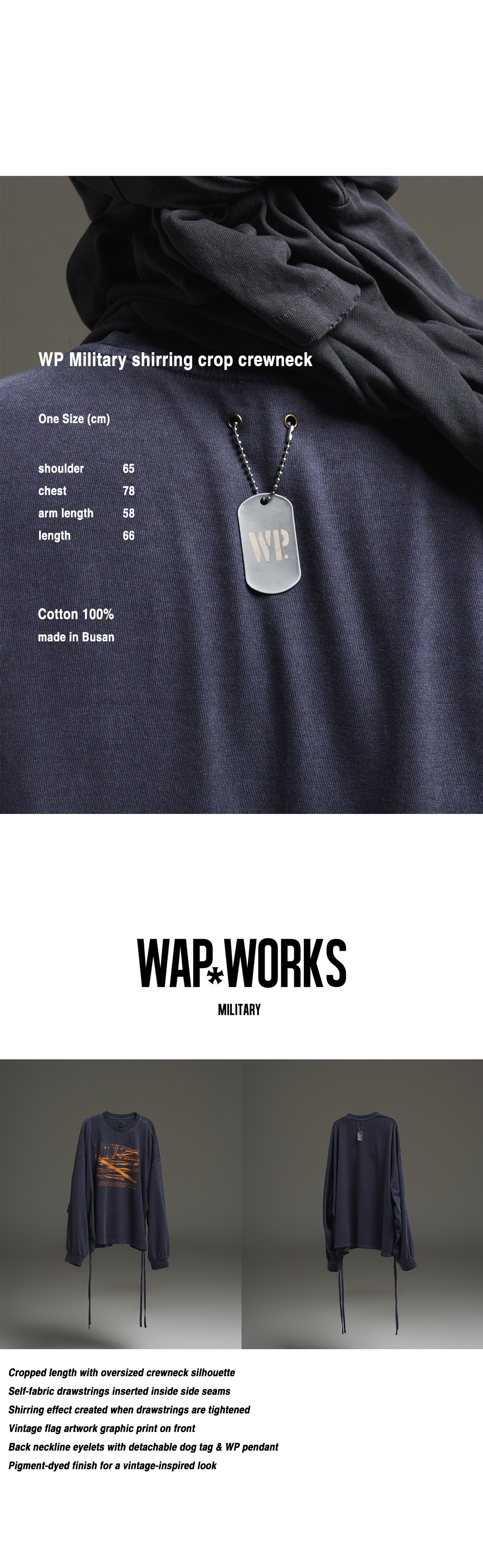 왑웍스 더블유피 밀리터리 셔링크롭 크루넥 네이비