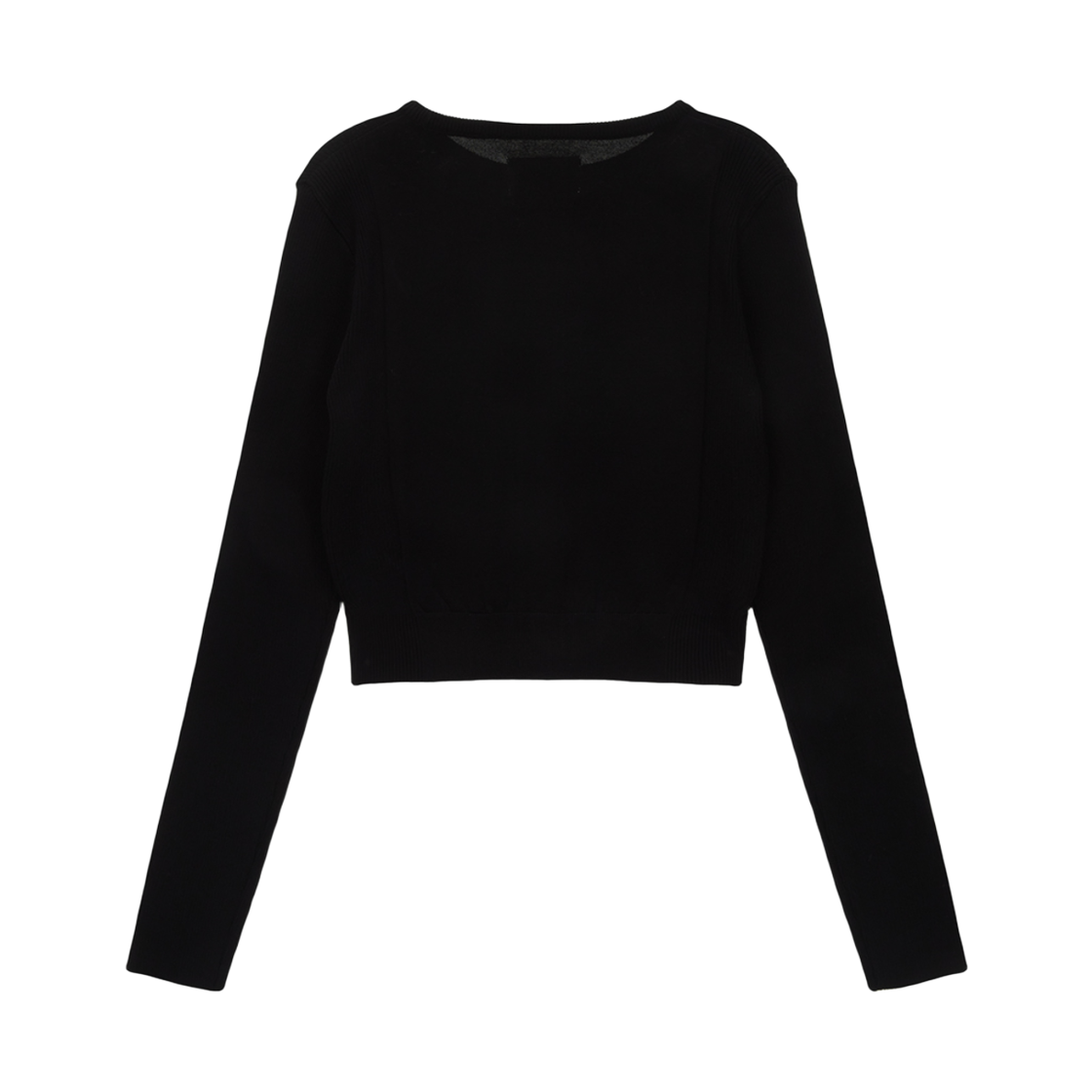 (W) 마뗑킴 로고 포인트 자카드 니트 크롭 탑 블랙