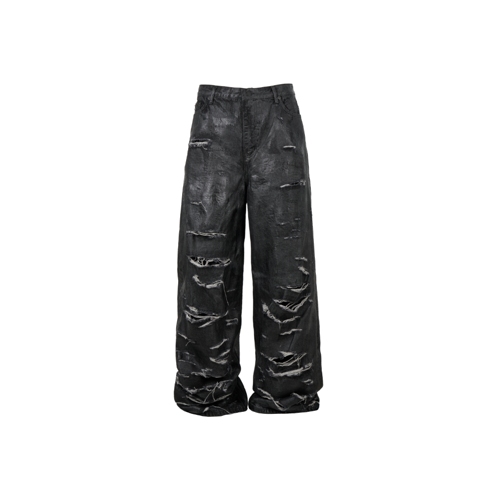 바지를 내려 새깅을 할 경우 극대화 되는 C shape의 패턴을 적용, 코팅 퀄리티를 위해 고가의 이태리산 코팅액을 사용하였으며 안감이 있어 계절에 구애받지 않고 착용하실 수 있습니다 - Signature wide baggy pattern - Includes inner lining - Hard coating detail - Distressed detail - Used Italy coating liquid