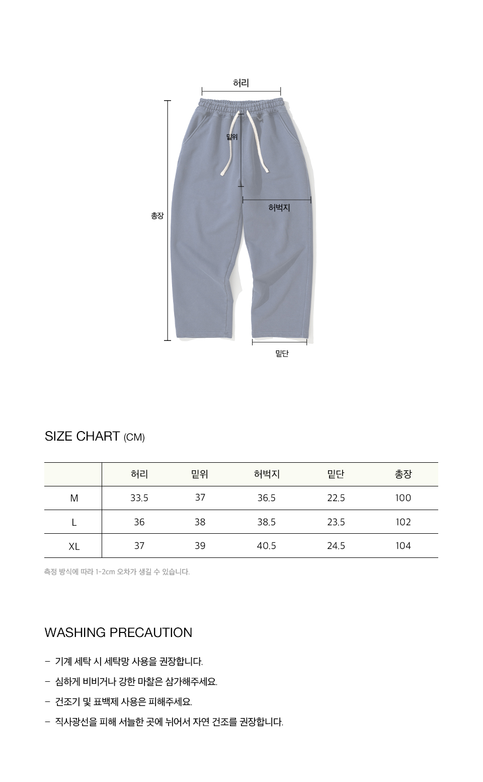 | 총장 | 허리 | 밑위 | 허벅지 | 밑단 |