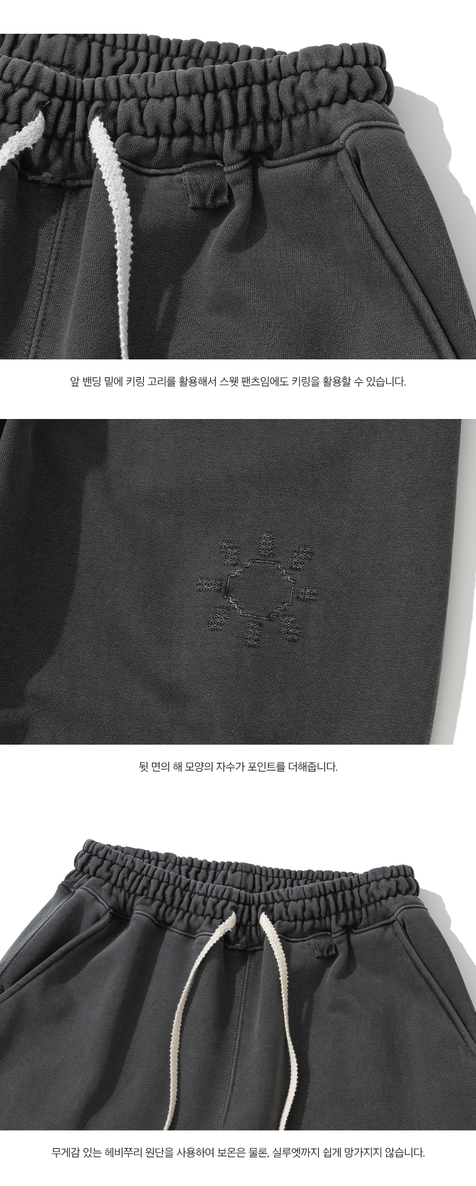 빈티지 느낌의 특징을 가진 피그먼트 워싱으로 발매된 제품과 더욱 접근하기 쉽게, 피그먼트 없이 본연의 자연스러운 컬러감이 매력적인 스웻팬츠입니다. 앞면 밴딩 아래에는 키링을 걸 수 있는 고리 디테일, 뒷면에는 해 모양의 자수 포인트가 더해져 위트 있는 무드를 완성했습니다. 코튼 55%, 폴리 45%의 혼용률의 헤비쭈리 원단과 여유로운 사이즈로 활동성과 내구성을 모두 갖춘, 일상 속 어디서든 편안하게 즐길 수 있는 팬츠입니다. 캐주얼한 데일리룩부터 감도 있는 이지웨어까지, 니티드의 감성이 자연스럽게 어우러진 이번 협업 컬렉션을 만나보세요.