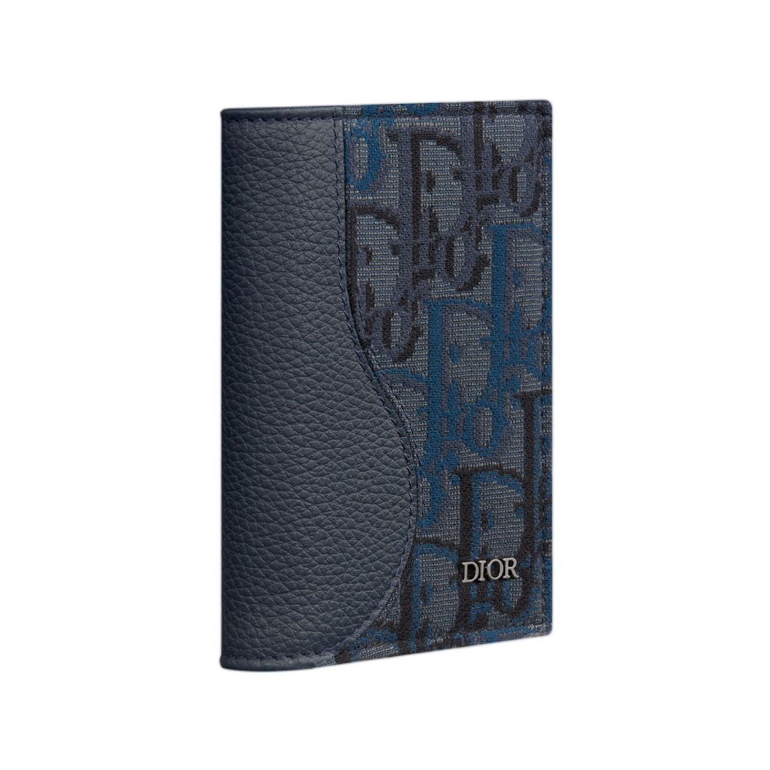 디올 새들 버티컬 바이폴드 카드 홀더 그레인드 카프스킨 & 디올 오블리크 트리오 자카드 마르퀘트리 딥 블루 딥 블루