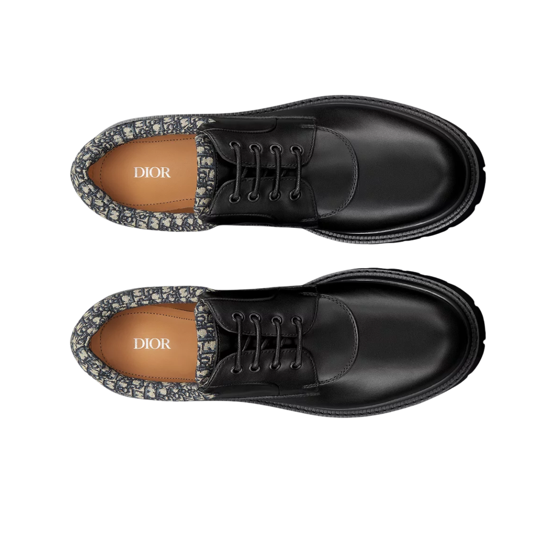 디올 익스플로러 III 더비 슈 스무스 카프스킨 디올 오블리크 자카드 블랙 베이지 블랙