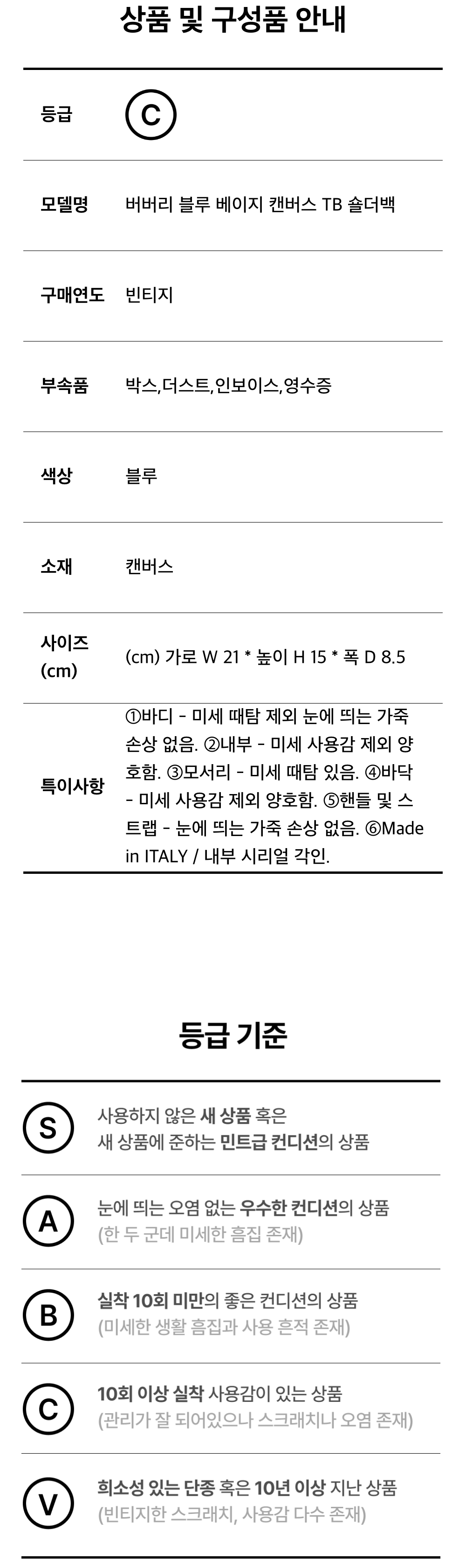 버버리 블루 베이지 캔버스 TB 숄더백 D-A39560