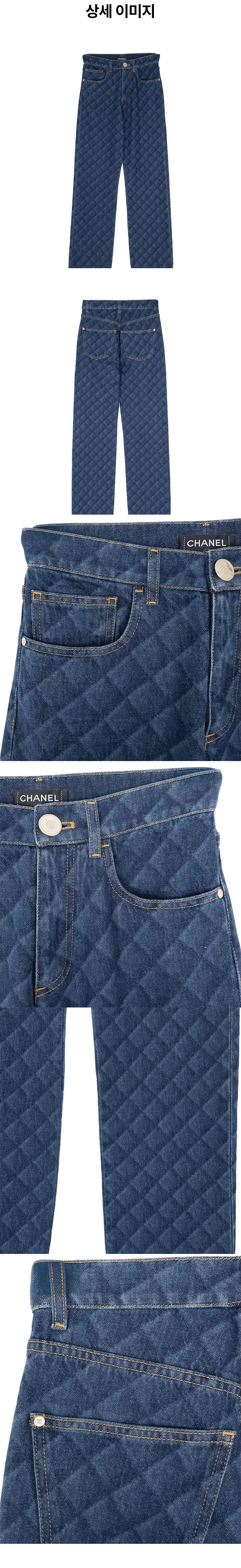 샤넬 22B 퀼팅 프린티드 데님 팬츠 34 다크블루 (5ET1733)