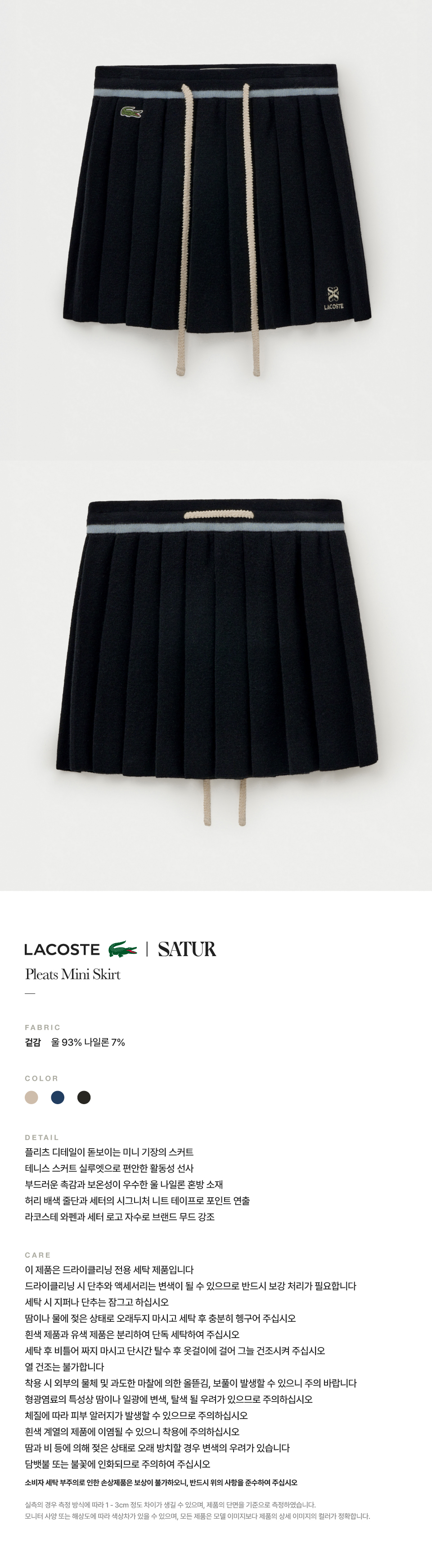 라코스테 X 세터 우먼 플리츠 미니 스커트 블랙