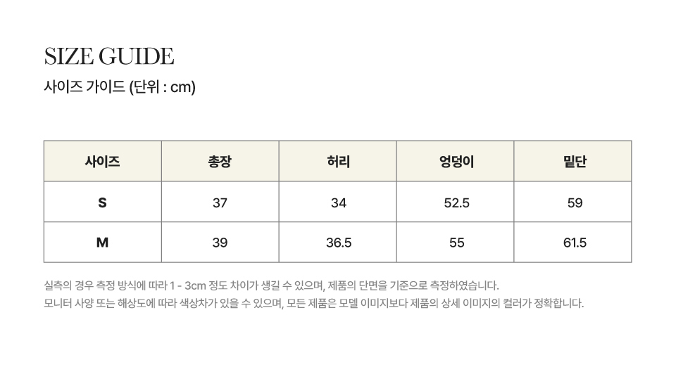 측정 방법에 따라 사이즈에 일부 오차가 있을 수 있습니다.