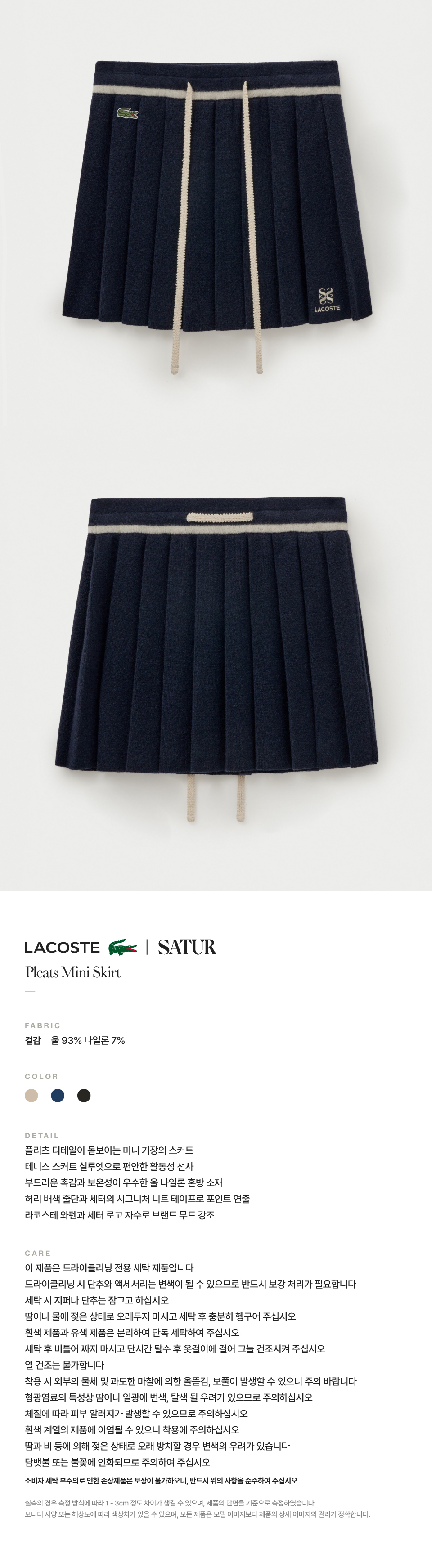 라코스테 X 세터 우먼 플리츠 미니 스커트 네이비