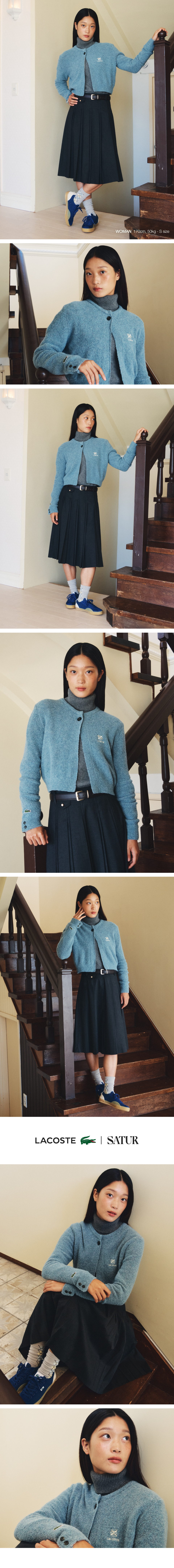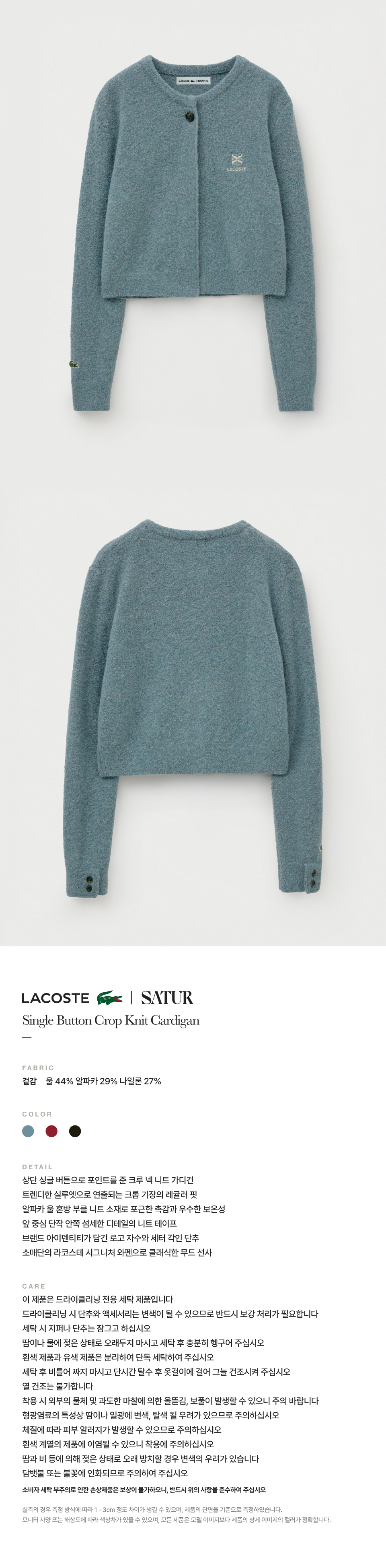 라코스테 X 세터 우먼 싱글 버튼 크롭 니트 가디건 포그 블루