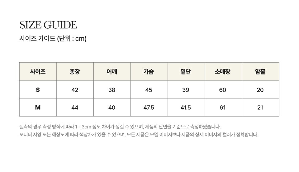 측정 방법에 따라 사이즈에 일부 오차가 있을 수 있습니다.