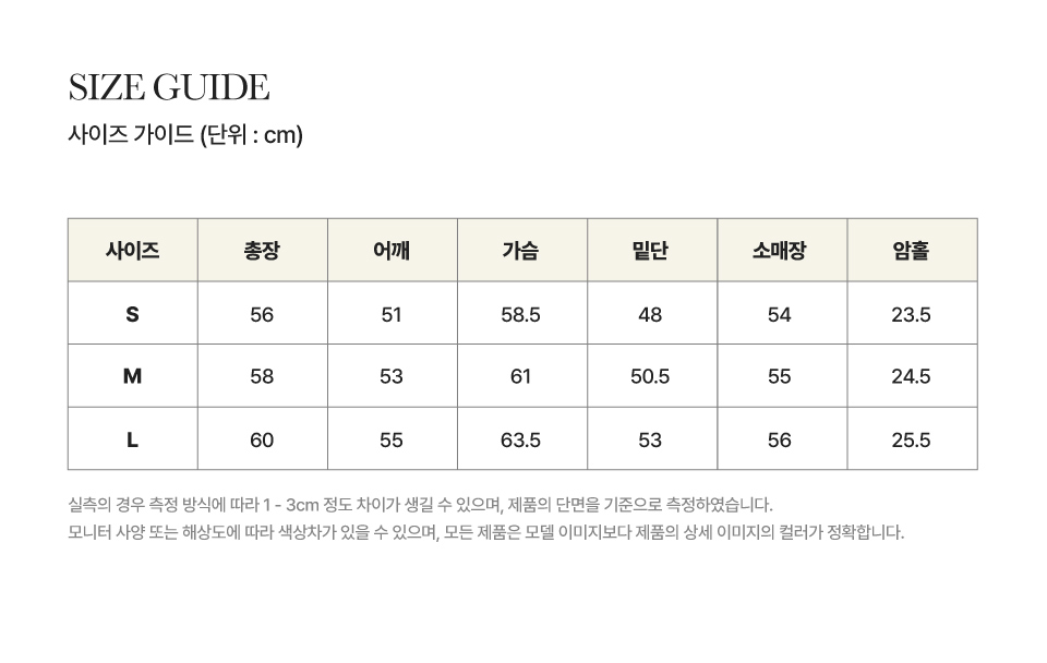 측정 방법에 따라 사이즈에 일부 오차가 있을 수 있습니다.