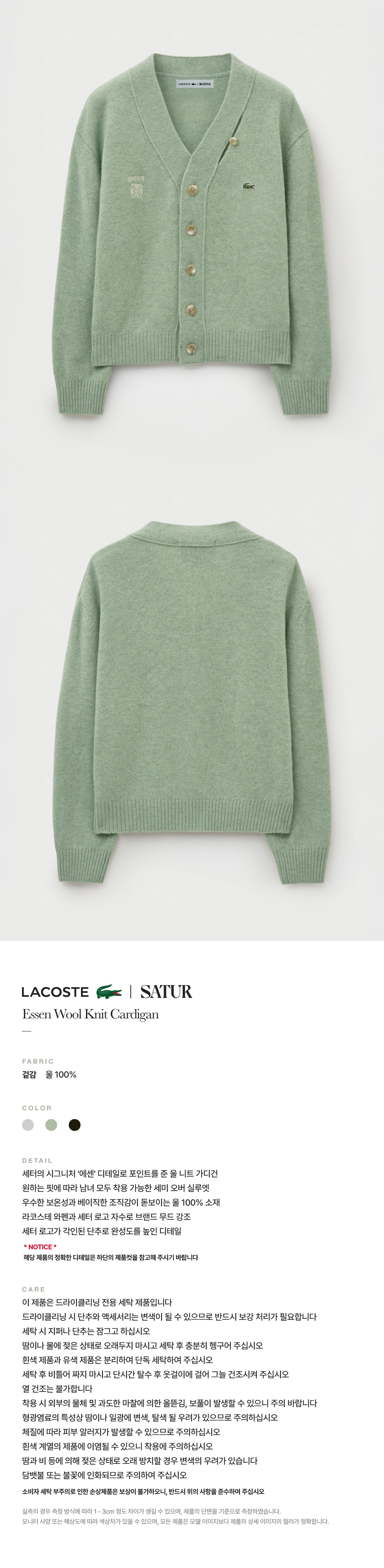 라코스테 X 세터 에센 울 니트 가디건 민트