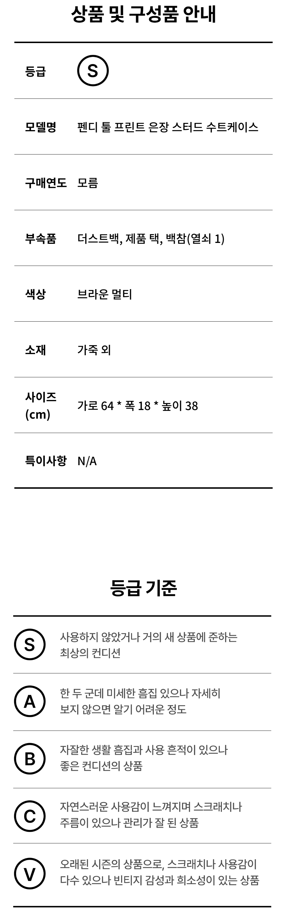 펜디 툴 프린트 은장 스터드 수트케이스