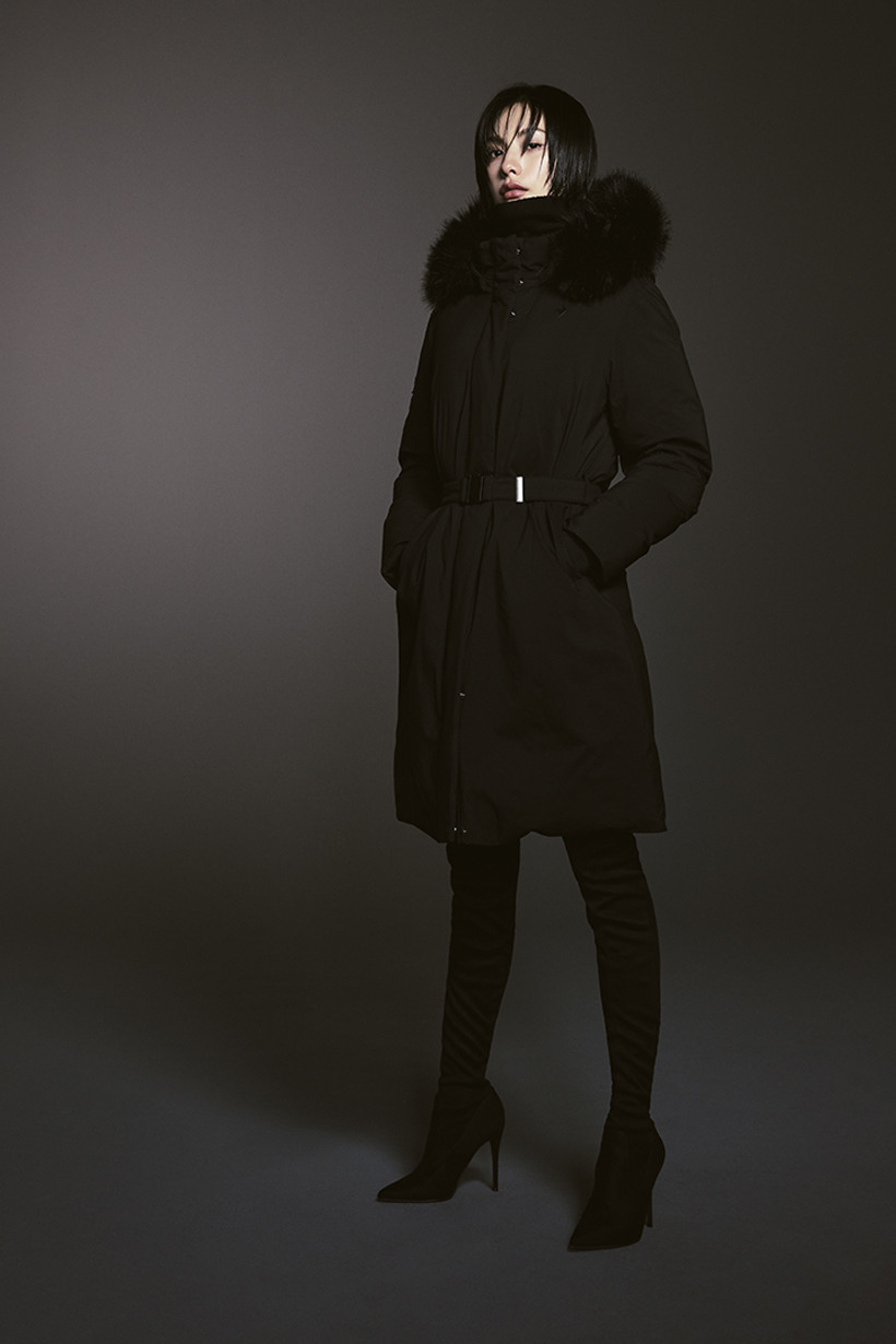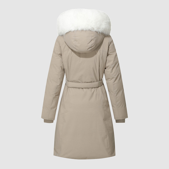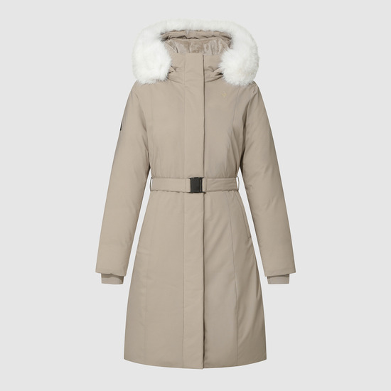 le coq sportif Women's Slim-Fit Belted Long Goose Down Jacket Dark Beige