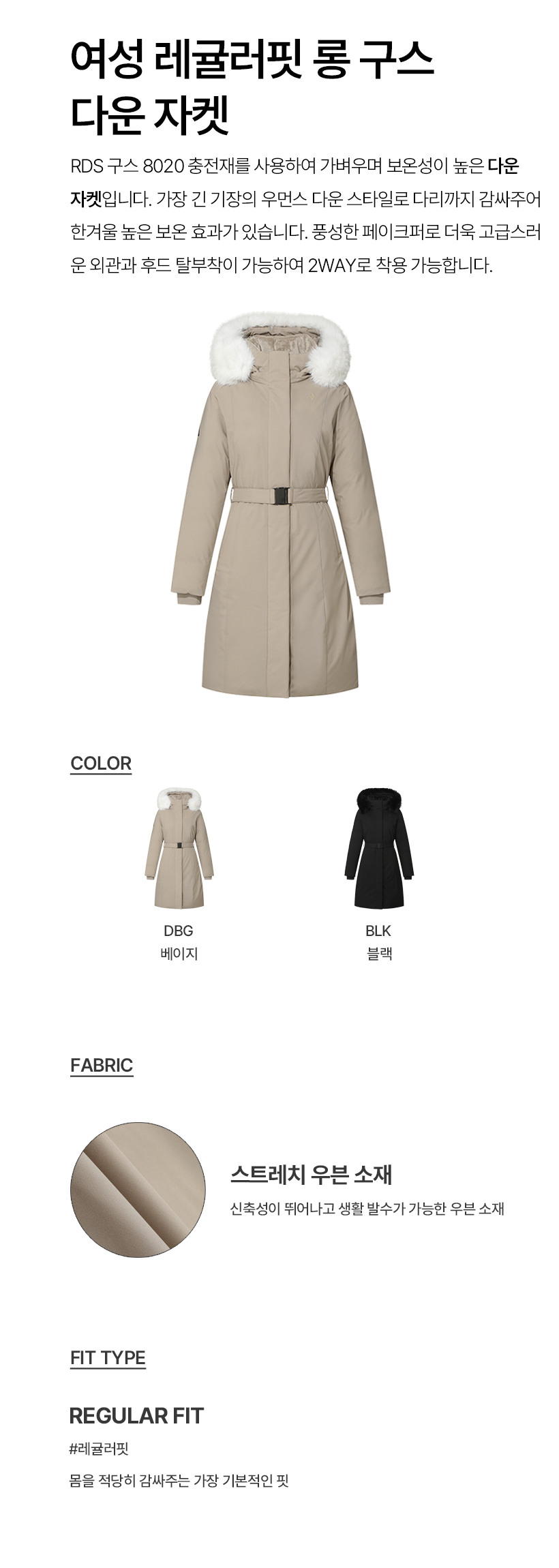 르꼬끄 스포르티브 여성 레귤러핏 롱 구스 다운 자켓 - 베이지 QQ422ODJN2
