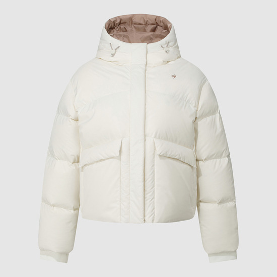le coq sportif Women's Neige Loose-Fit Hooded Short Down Jacket Ivory